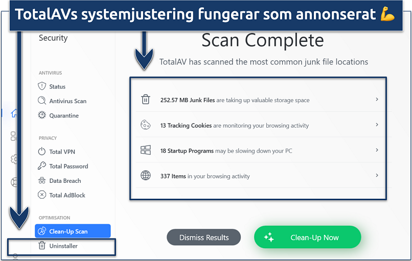 TotalAV prioriterar din enhets prestanda genom en uppsättning optimeringsverktyg, som skräprensare och uppstartshanterare, som hjälper till att hålla ditt system optimerat. De erbjuder också ett spelläge som optimerar din dators resursanvändning när du spelar datorspel. På så sätt kan du spela utan lagg, som annars kan orsakas av säkerhetsrelaterade program som körs samtidigt.