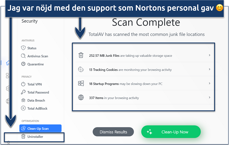 Mindre positivt är att de saknar föräldrakontroll, men deras skanner uppnår 100% upptäckt av skadlig programvara och kan blockera 99,8% av cyberhoten i realtid. Antivirusmotorn inkluderar också övervakning av dataintrång, annons-, spårnings- och cookieblockering. Den förstnämnda varnar dig om din personliga information är i fara. Jag värdesätter också hur det förenklar regelbundet underhåll genom att kombinera virussökningar, diskrensning och cookiekontroller i en process.